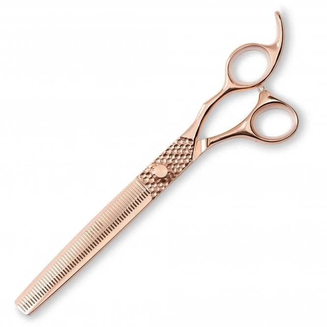G:Hub Premium Aurelia 7.5″ 46T Thinning Scissors are great for thinning the coat, and softening harsh scissoring and clipper lines. They create a natural look, removing bulk and leaving a smooth finish on the coat. Featuring 46 teeth on one edge, for effortless thinning, and a smooth edge on the other, for a clean, snag free groom. These scissors will not hesitate through any hair. Specifically designed for professional groomers with experienced scissoring techniques, and engineered with control and comfort in mind.