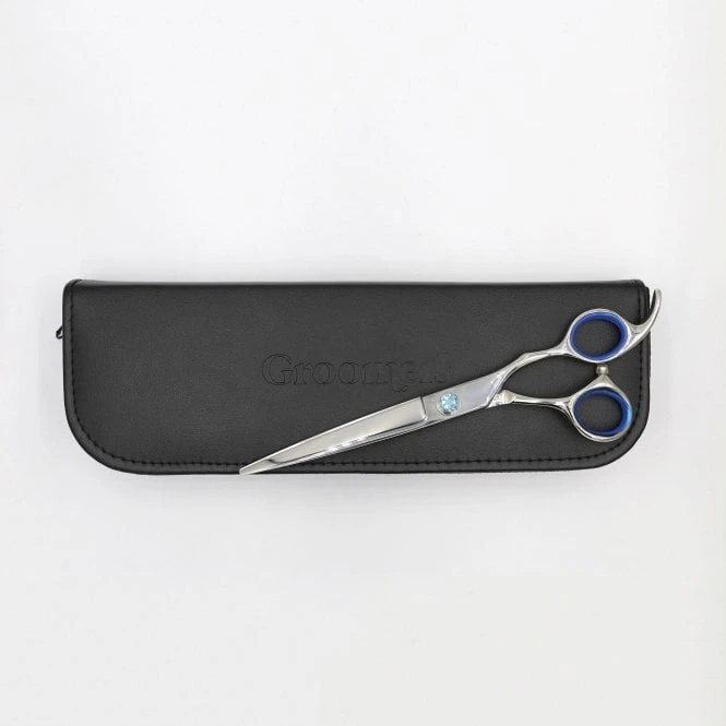 Groomers Topaz 7″ Curved Scissors are perfect for creating a neat rounded finish on coats, especially useful for shaping heads, face, and ears, ribcages, back leg angulation and rounding off feet. Use to shape and finish off your groom effortlessly.