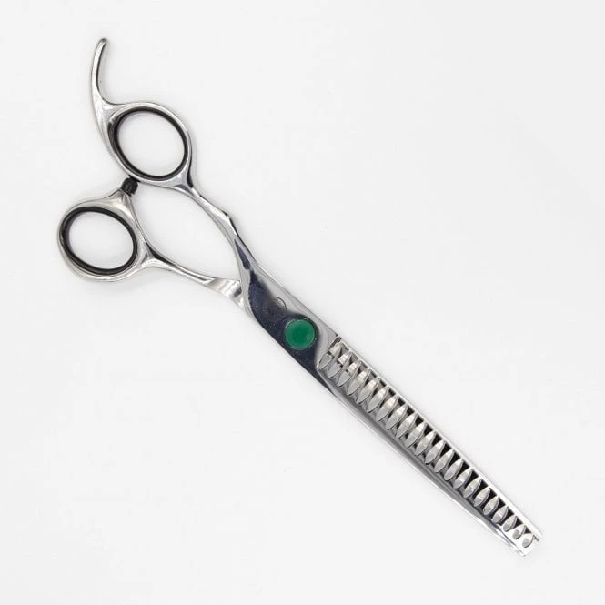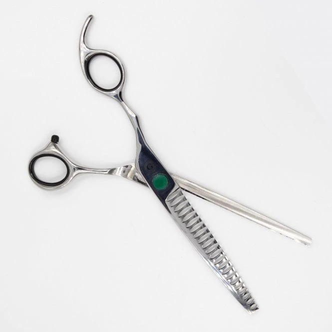 Groomers Simply G 7″ Left-handed Chunker Scissors are ideal for texturising the coat and removing harsh scissoring and clipper lines. Creating a natural finish, these scissors take out larger chunks of hair when compared with our standard thinners. With 21 teeth on one edge for effortless texturising and finishing, and a smooth edge on the other, for a clean, snag free groom.