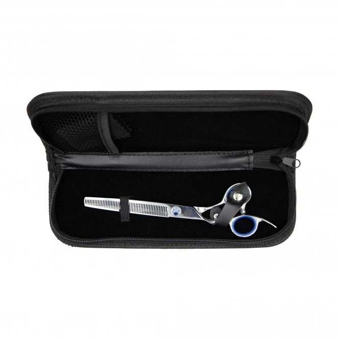 Groomers Topaz 7″ Left-Handed 50T Double Sided Thinning Scissors are perfect for a smooth and superior finish to the coat. These scissors have been designed to feature 50 serrated teeth on the top blade and 50 shorter teeth on the bottom blade and are finely tensioned to glide through the coat to help remove bulk, reduce breakage and to leave a soft, even finish.