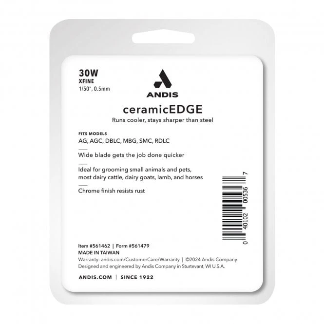 Time is money and nowhere is that truer than in the pet grooming salon. Let the new Andis ceramicEDGE Wide Blade lineup help you improve your grooming routine. Designed to make professional grooming faster and more efficient, Andis ceramicEDGE Wide Blades are 36% wider than standard blades and feature a one-of-a-kind 31-tooth ceramicEDGE cutter blade – 16% more than leading competitors – which provides a smooth, clean finish. Plus, ceramic cutters run cooler and stay sharper longer. The lower blade is constructed of high quality, carbon-steel that resists corrosion for durability and long life. Perfect for grooming larger dogs, these blades are compatible with all professional Andis detachable blade clippers.
