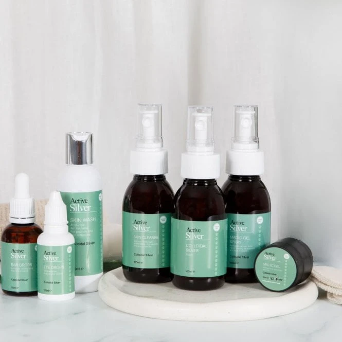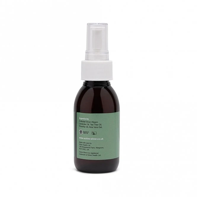 Colloidal Silver 25ppm (Aqua CI 77820), Aloe Vera Gel (Aloe Barbadensis Leaf Juice, Aqua Glycerin, Phenoxyethanol, Ethylhexlglycerin, Carbomer, Sodium Hydroxide, Disodium EDTA), Lavender Oil (Lavandula Angustifolia Oil),), Tea Tree Oil (Maelaleuca Alternifoilia Leaf Oil) Rosehip Oil (Rosa Canina Fruit Oil).