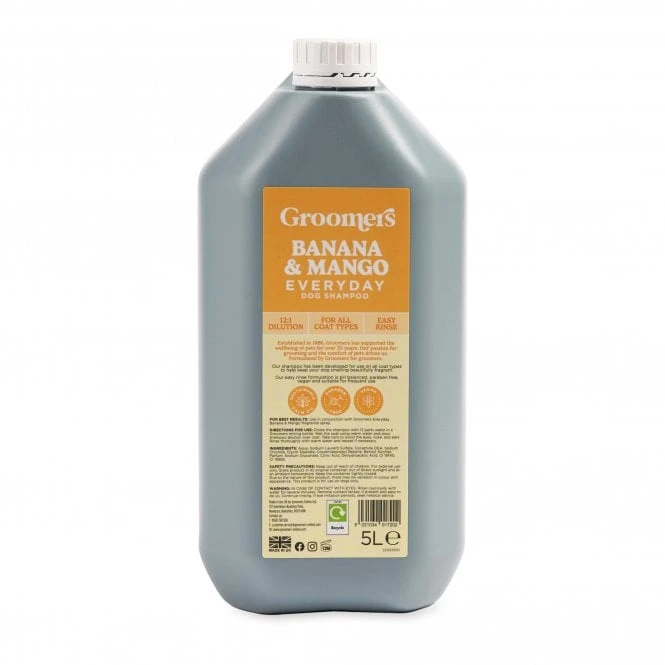 Groomers Everyday Banana & Mango Shampoo has been formulated to thoroughly cleanse, condition and refresh your dog’s coat. Our easy rinse formulation is pH balanced with fabulously fruity fragrance that will leave the coat smelling fresher for longer. Suitable for frequent use on all coat types, our formulations are safe, gentle and non-irritating.
