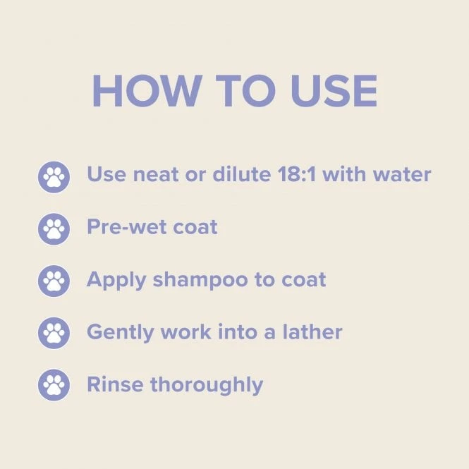 - Apply shampoo mix from the neck down and massage into the coat using your hands or a rubber mitt from extra cleansing, carefully avoiding the eyes, ears and mouth.