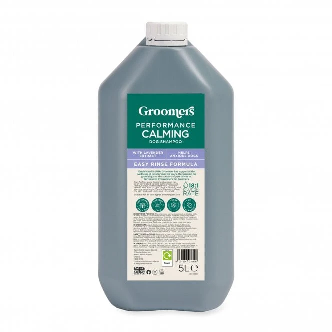 Groomers Performance Calming Shampoo has been developed to calm anxious and nervous dogs. Formulated with Lavender extract and Mint to give dogs a relaxing and sensory experience. Gentle cleansing leaves the skin and coat clean and refreshed.
