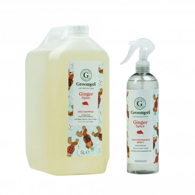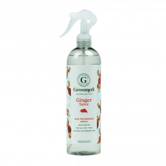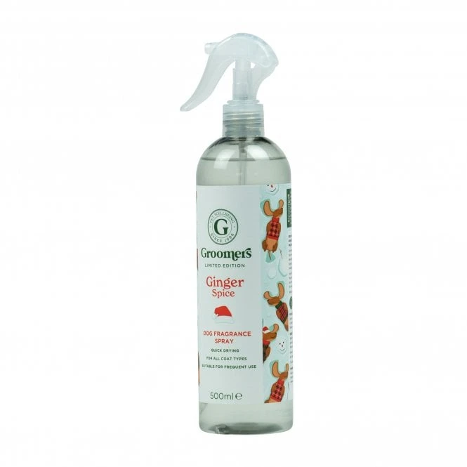 Groomers Festive Ginger Spice Fragrance Spray lifts away pet odours and leaves the coat smelling beautifully fragrant in one quick spritz. It has been developed for frequent use on all coat types, with a gorgeous festive scent of warm ginger spice. Our Christmas exclusive fragrance spray is quick drying and perfect for use after or between baths.