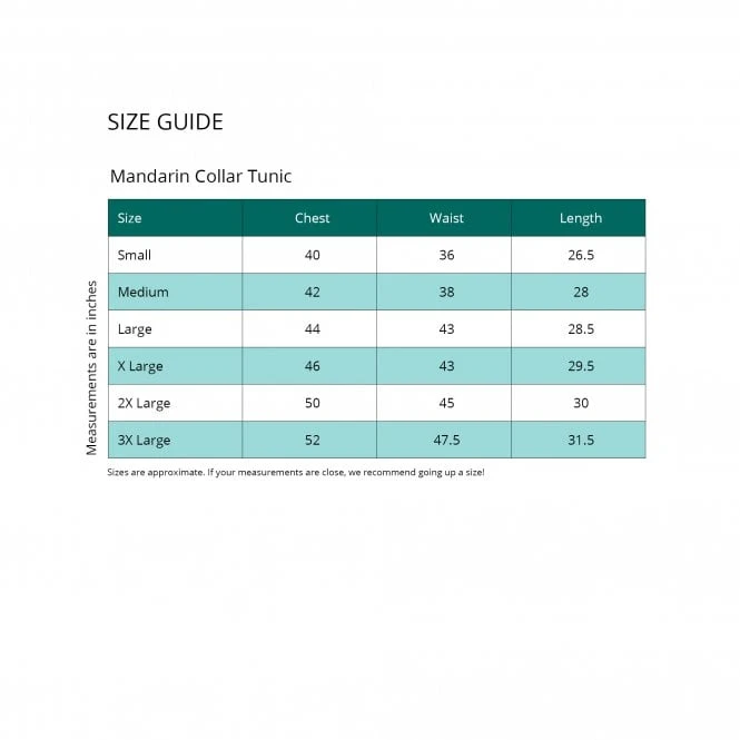 NB. Measurements are in inches. Sizes are approximate. If your measurements are close, we recommend going up a size.