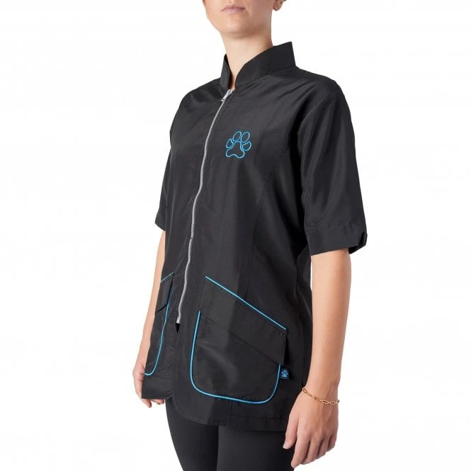 It also features a full zip front to easily slip on and off and two large pockets to store grooming equipment. The stylish mandarin collar ensures that flying hairs stay away from your neck, where they could easily irritate. The fabric of this garment to designed to be lightweight, so that it dries quickly after you’ve had a soaking.