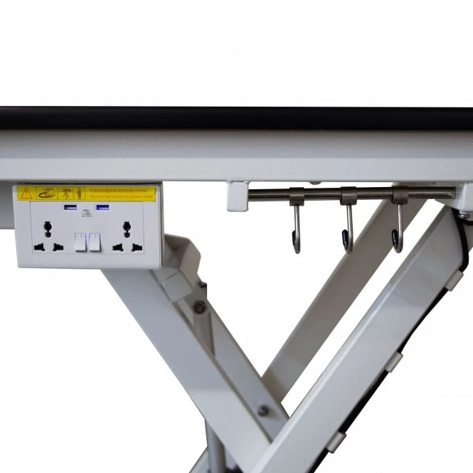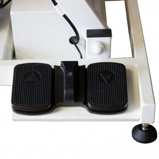 It has an electric chassis controlled via foot pedals that can be lowered to 30cm allowing easy access for larger or infirm dogs to walk on. It can be lifted to 95cm for a comfortable working height, helping to alleviate back pain or strain.