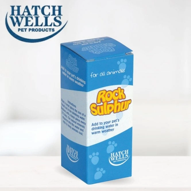 Hatchwells Rock Sulphur is a water supplement to help cool animals in hot weather. This supplement contains natural minerals helps cool the animal’s blood, and is suitable for dogs, cats, horses and rabbits. Simply place a small piece of product in water bowl and replace every 2-3 days.