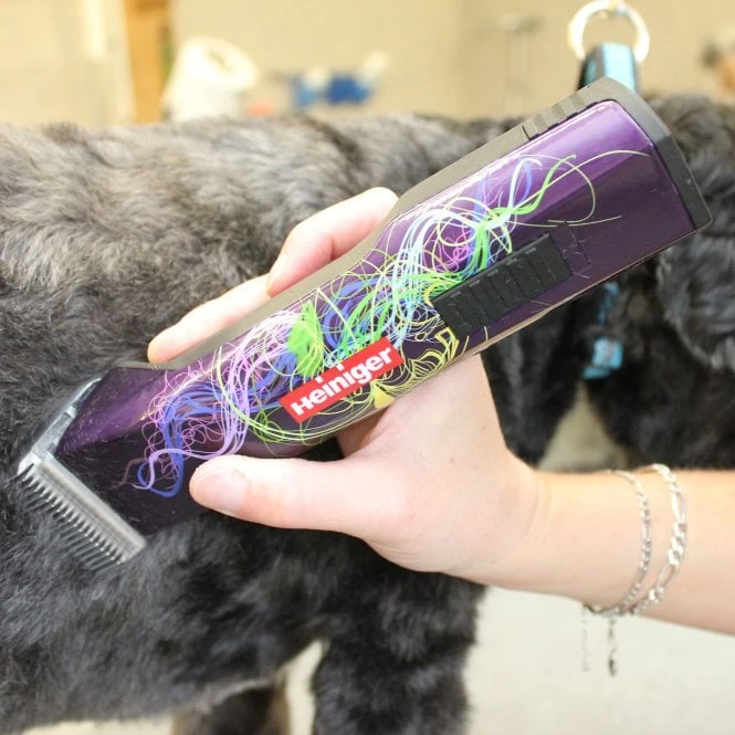 The Heiniger Saphir Style Clipper is a rechargeable cordless clipper designed for all-day, heavy-duty use. The powerful motor offers reliability and a high degree of torque, perfect for powering through all coat types. It has a lovely purple finish to compliment your salon.