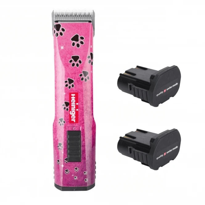 The Heiniger Saphir Style Pink Paws Clipper is a rechargeable cordless clipper designed for all-day, heavy-duty use. The powerful motor offers reliability and a high degree of torque, perfect for powering through all coat types. It has a playful pawprint design and will make a great addition to any busy salon.
