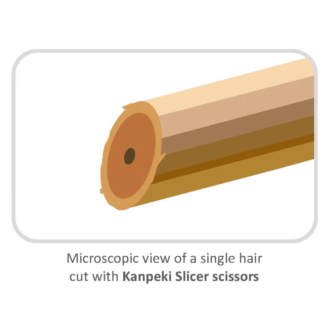 With Kanpeki Slicer both blades cut and each hair is cleanly sliced through giving a much cleaner accurate finish with less resistance and a smoother action.