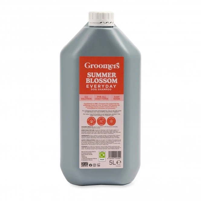 Groomers Everyday Summer Blossom Shampoo has been formulated to thoroughly cleanse, condition and refresh your dog’s coat. Our easy rinse formulation is pH balanced with a warm summer floral fragrance that will leave the coat smelling fresher for longer. Suitable for frequent use on all coat types, our formulations are safe, gentle and non-irritating.
