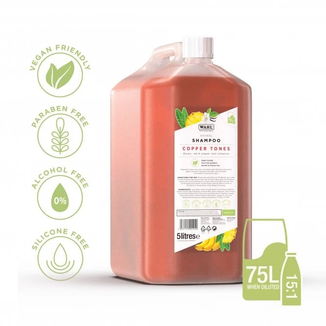 Wahl Copper Tones Shampoo is a concentrated formula that will need diluting before use. Concentrate 15:1.