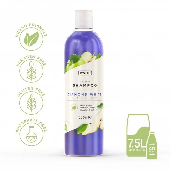 The shampoo features white enhancers to revitalise and boost the natural pigmentation of the coat for a dazzling finish, and it leaves the coat bright, with a silky texture and high shine.